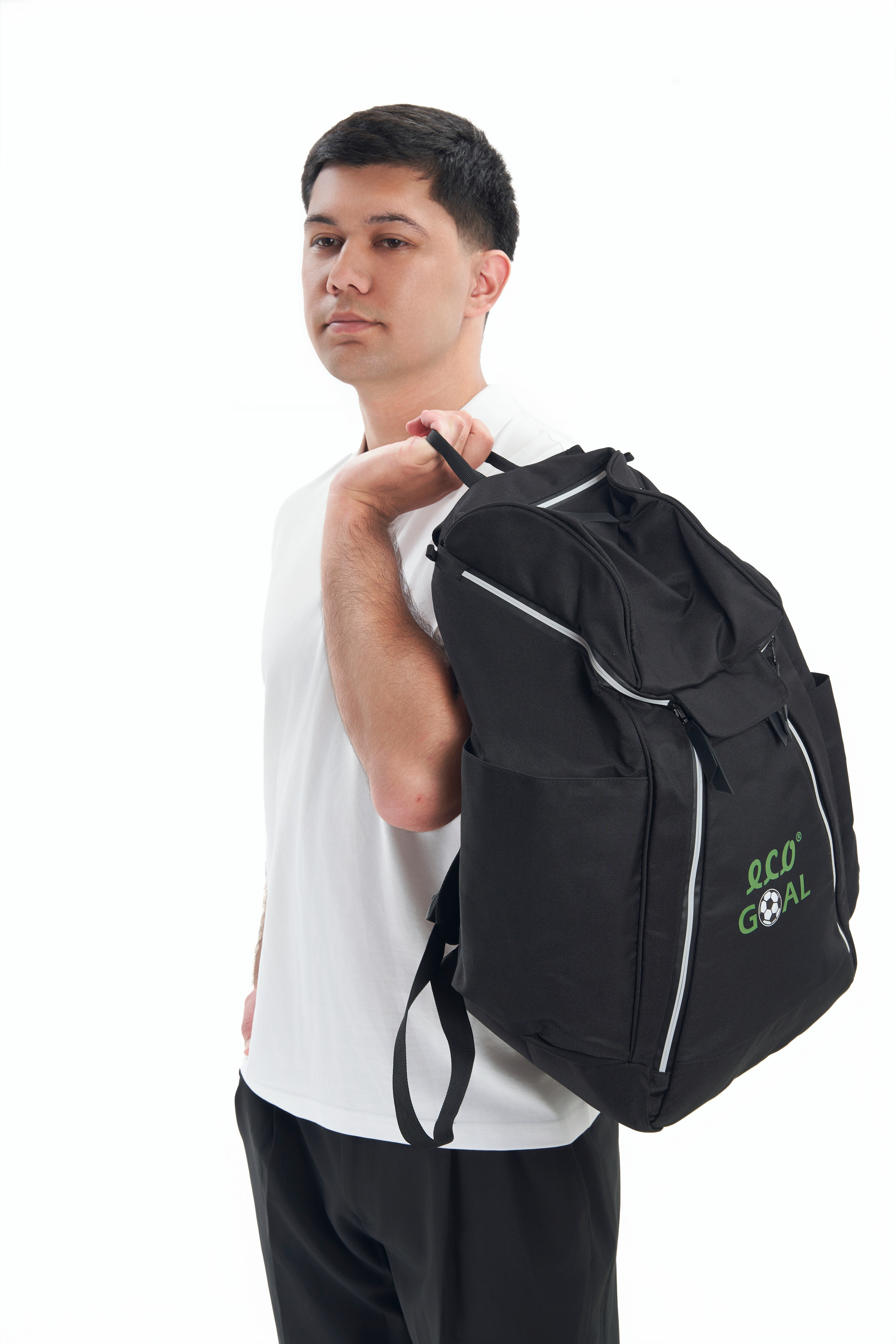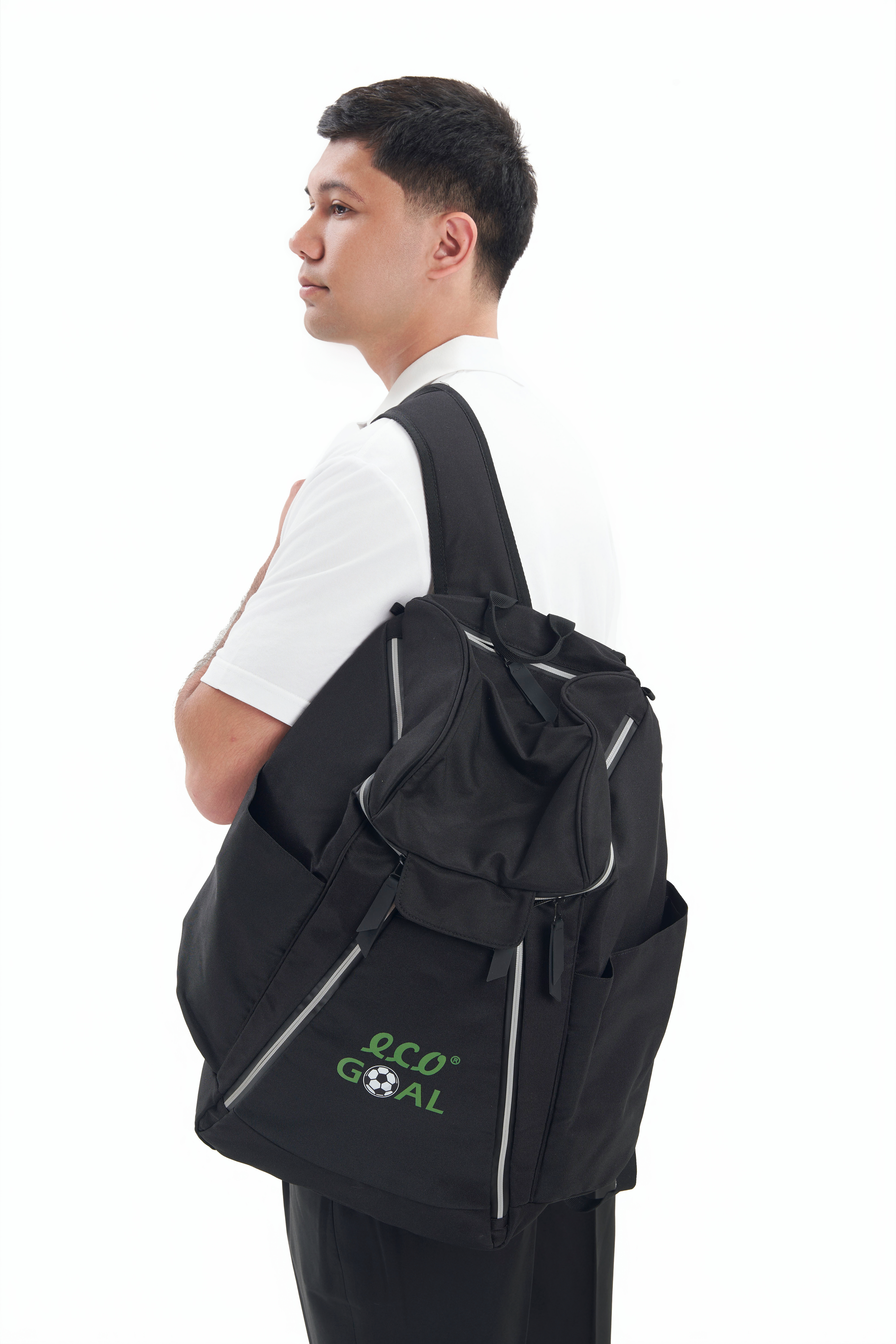 Eco Goal Backpack is crafted from durable recycled PET (RPET) fabric, it repurposes plastic waste into a robust yet lightweight bag, making it a planet-friendly choice for football enthusiasts.