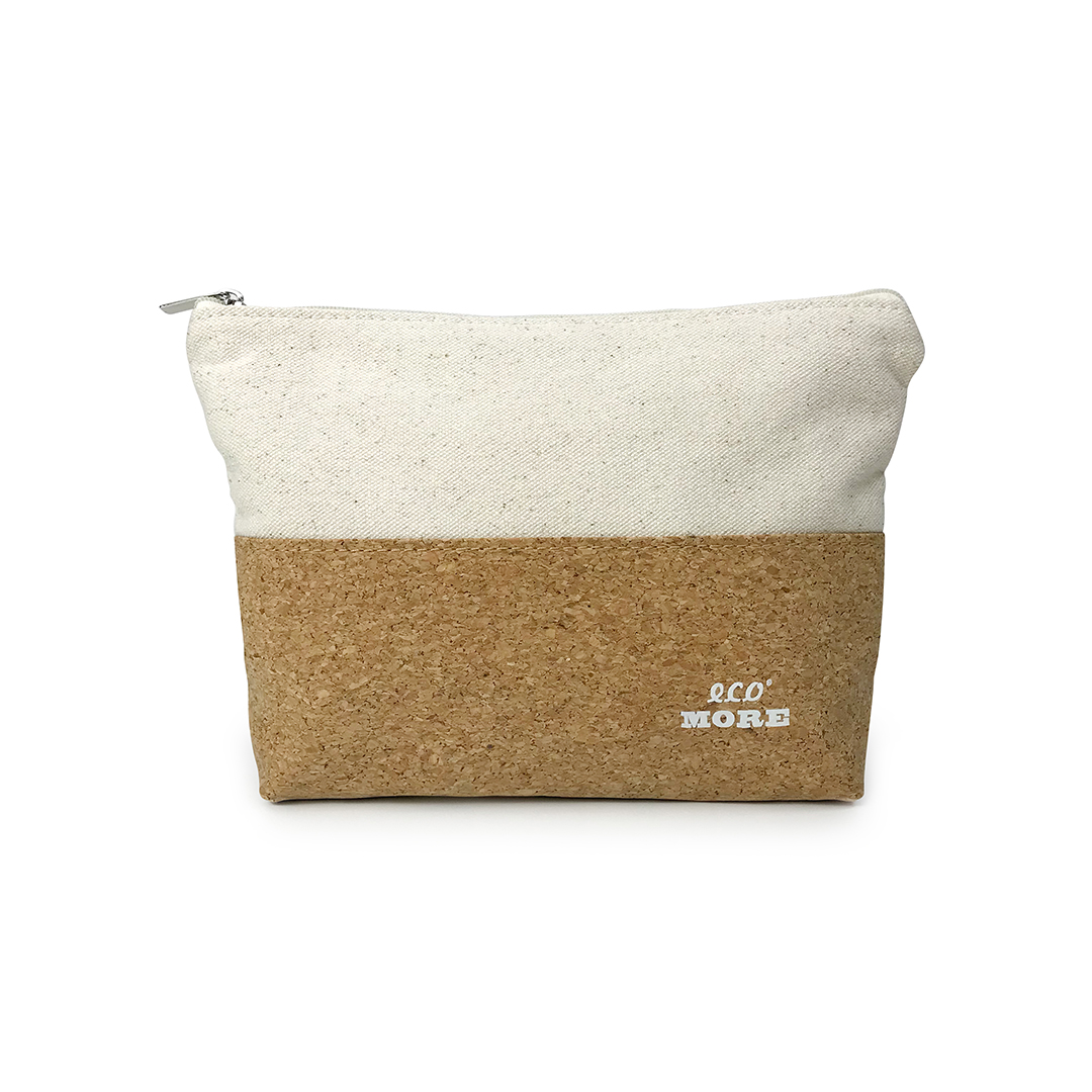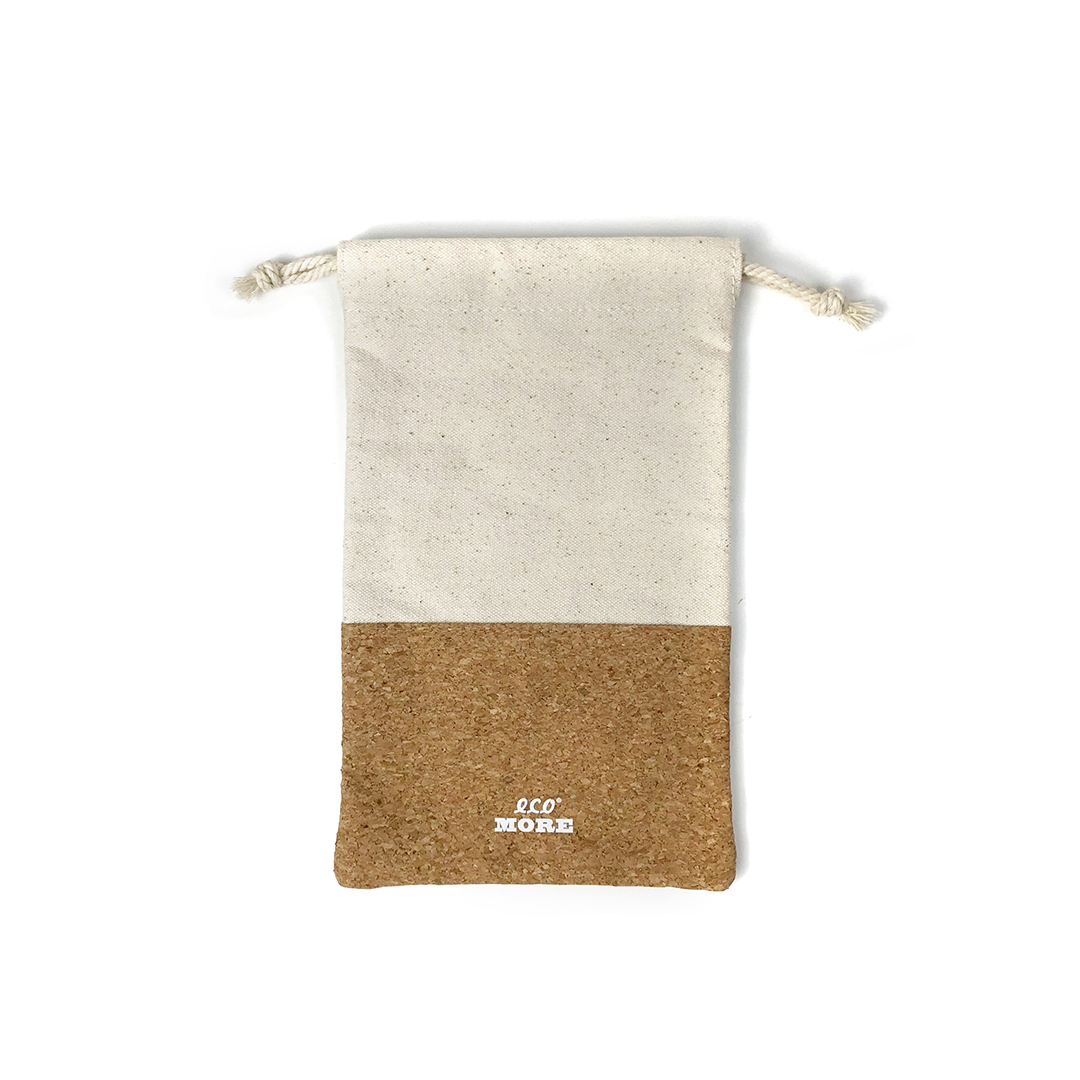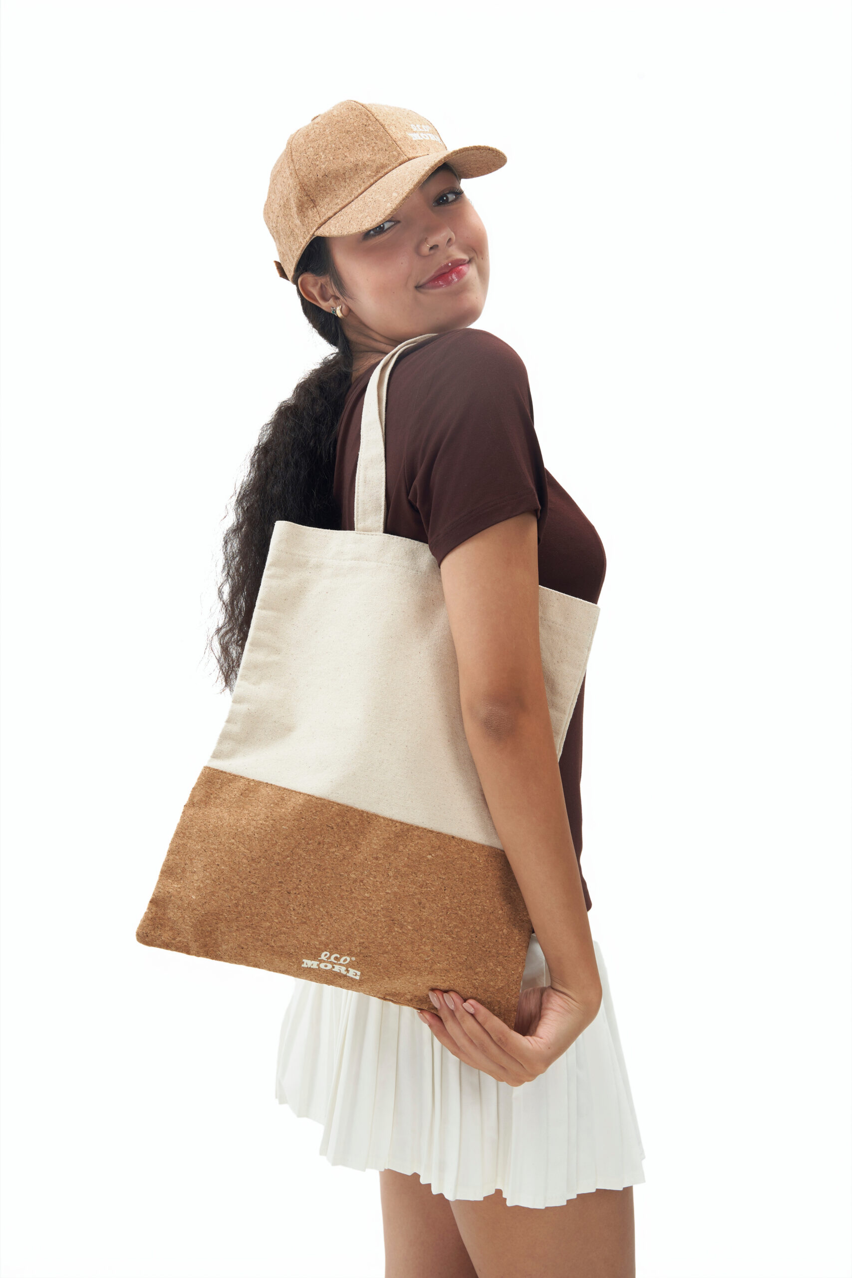 We also have a hybrid series that features a combination of cork and recycled cotton across versatile accessories, merging natural resilience with soft texture for everyday functionality. The shopping bag pairs cork’s structural integrity with cotton’s tactile comfort, while the cosmetic pouch combines cork’s durability with cotton’s decorative appeal. Additionally, the drawstring pouch integrates adjustable hemp cords with cork accents for multipurpose use.